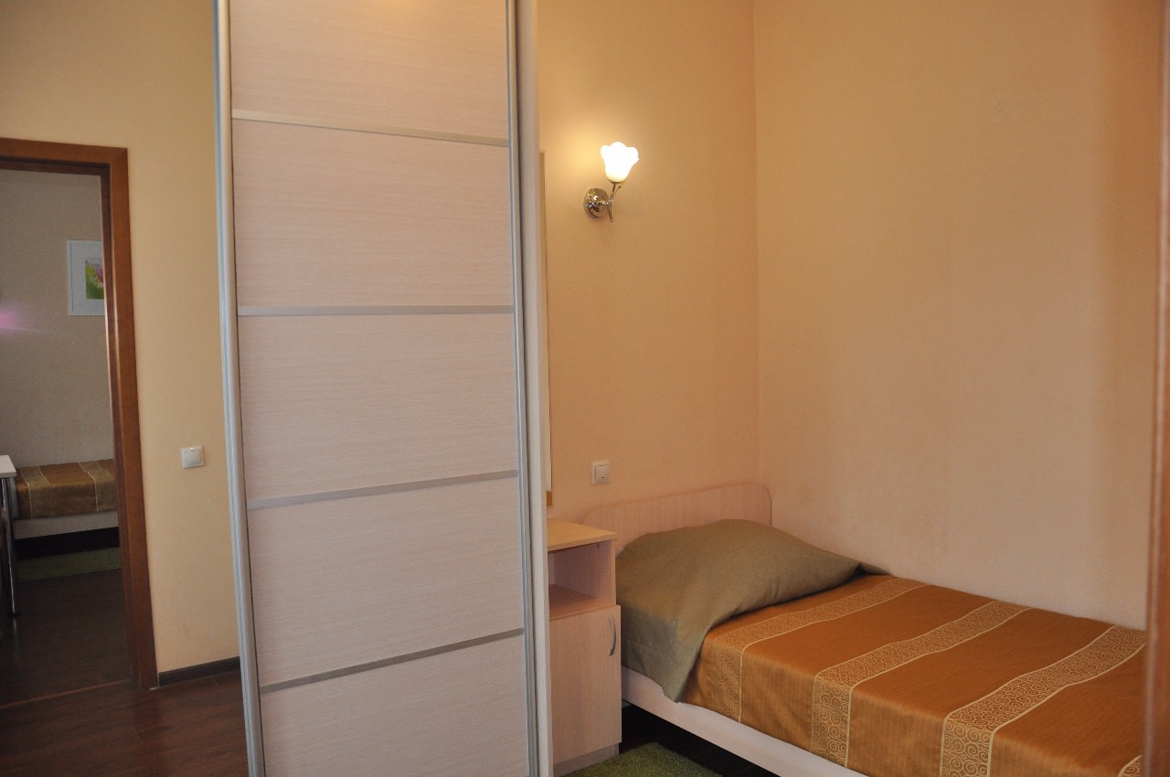 2 осн. места. 1 доп. место. Мебель: вешалка, зеркало, кресло-кровать, кровати односпальные, прикроватные тумбочки, стол, стул, шкаф. Оборудование: телевизор, холодильник, чайный набор посуды, электрочайник. Санузел: с ванной, туалетные принадлежности. Сервис: Wi-Fi бесплатно, смена полотенец, смена постельного белья, уборка номера.