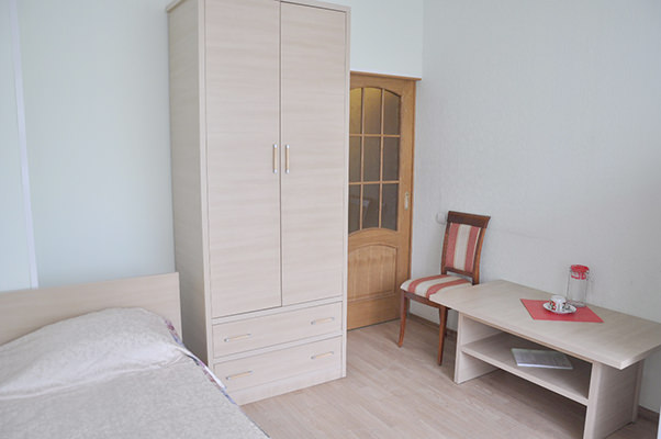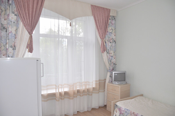 Площадь номера - 13-17 м² кв.м. 1 осн. место. 1 доп. место. Балкон. Мебель: кровать односпальная, прикроватная тумбочка, стол, стулья, шкаф. Оборудование: телевизор, холодильник. Санузел: с ванной или душевой кабиной, туалетные принадлежности. Сервис: Wi-Fi бесплатно, смена полотенец, смена постельного белья, уборка номера.