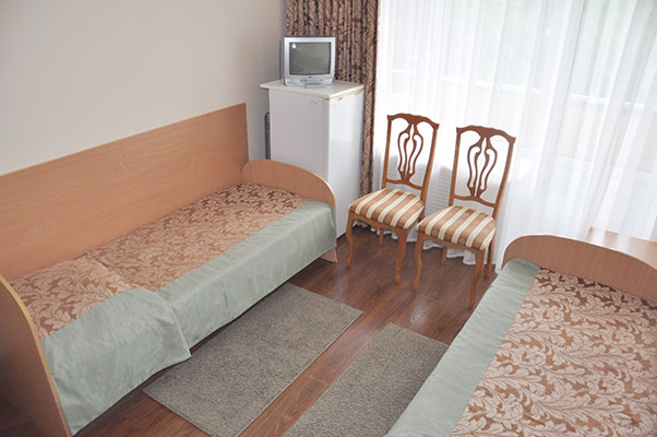 Площадь номера - 13-17 м² кв.м. 2 осн. места. 1 доп. место. Балкон. Мебель: кровати односпальные, прикроватные тумбочки, столик журнальный, стул, шкаф. Оборудование: телевизор, холодильник. Санузел: с ванной или душевой кабиной, туалетные принадлежности. Сервис: Wi-Fi бесплатно, смена полотенец, смена постельного белья, уборка номера.